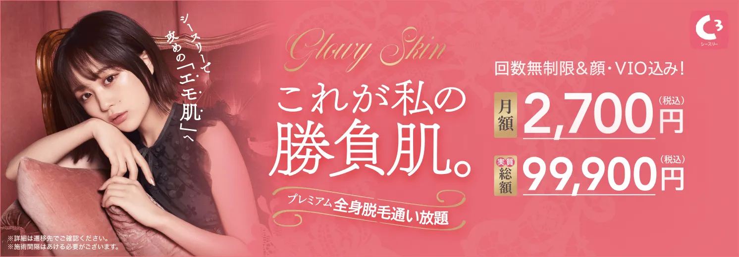 全身脱毛通い放題を契約すると15万円割引になります。さらに、シースリーオリジナルの家庭用光美容器または美顔器をプレゼント。